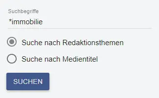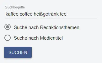 Um nach den geplanten Themen eines speziellen Medientitels zu suchen, klicken Sie bitte auf "Suche nach Medientitel" und geben Sie den/die gesuchten Medientitel ein. Medien, die aus mehreren Begriffen bestehen, setzen Sie bitte in Anführungszeichen.